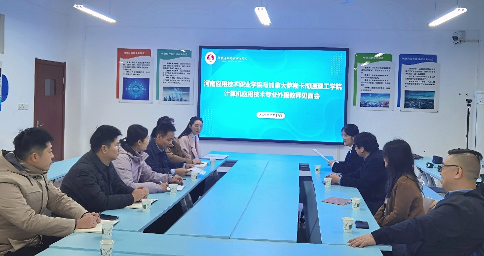 为进一步推进学院中外合作办学项目提质增效,2025年11月17日,学院与加拿大萨斯卡彻温理工学院中加合作办学计算机应用技术专业教学推进会在开封北院举行。中加合作项目主任BruceYu,加拿大外教团队Xin Wang (Alex)和Mayra Samaniego老师,2026世界杯官方合作网站班子成员、教师代表以及科研外事处工作人员等出席会议。会议由副院长夏丽珍主持。