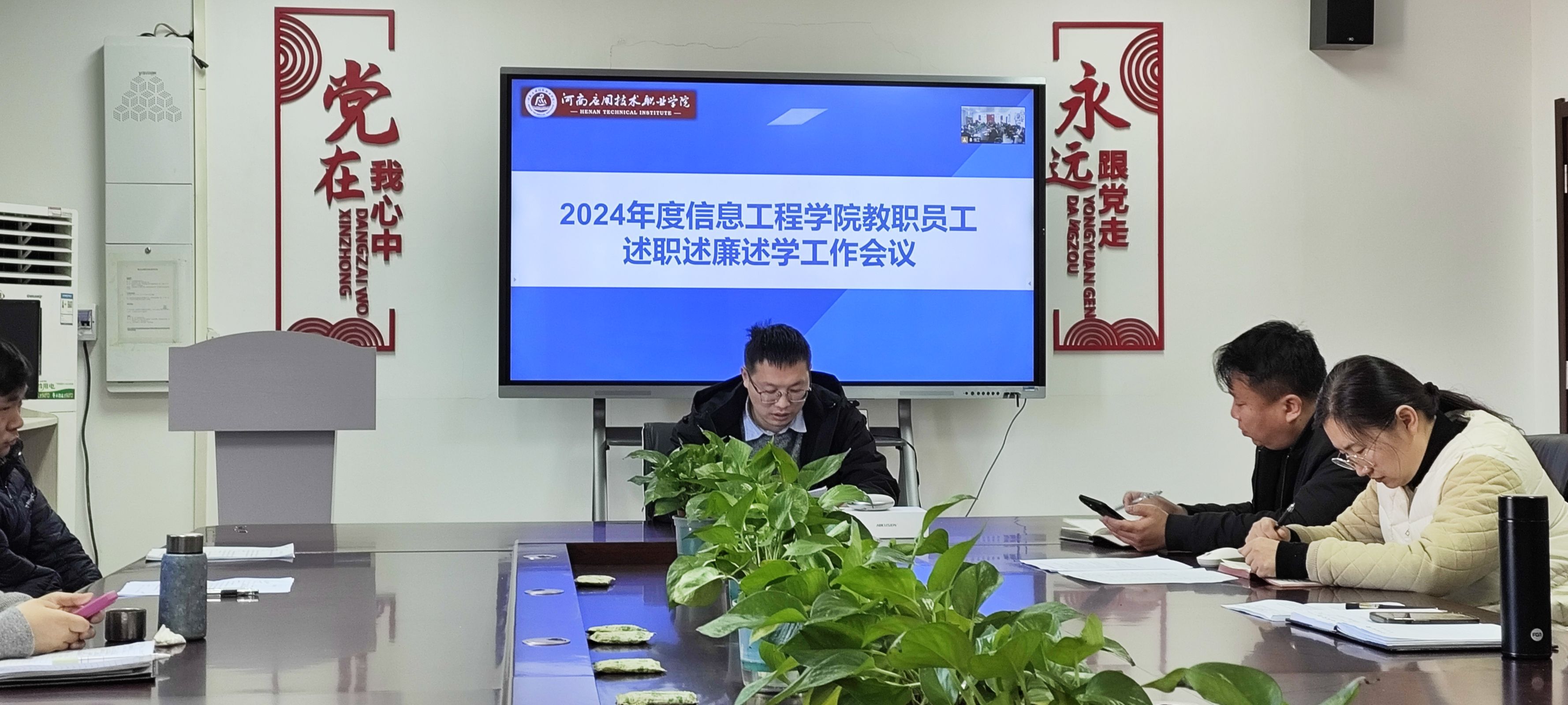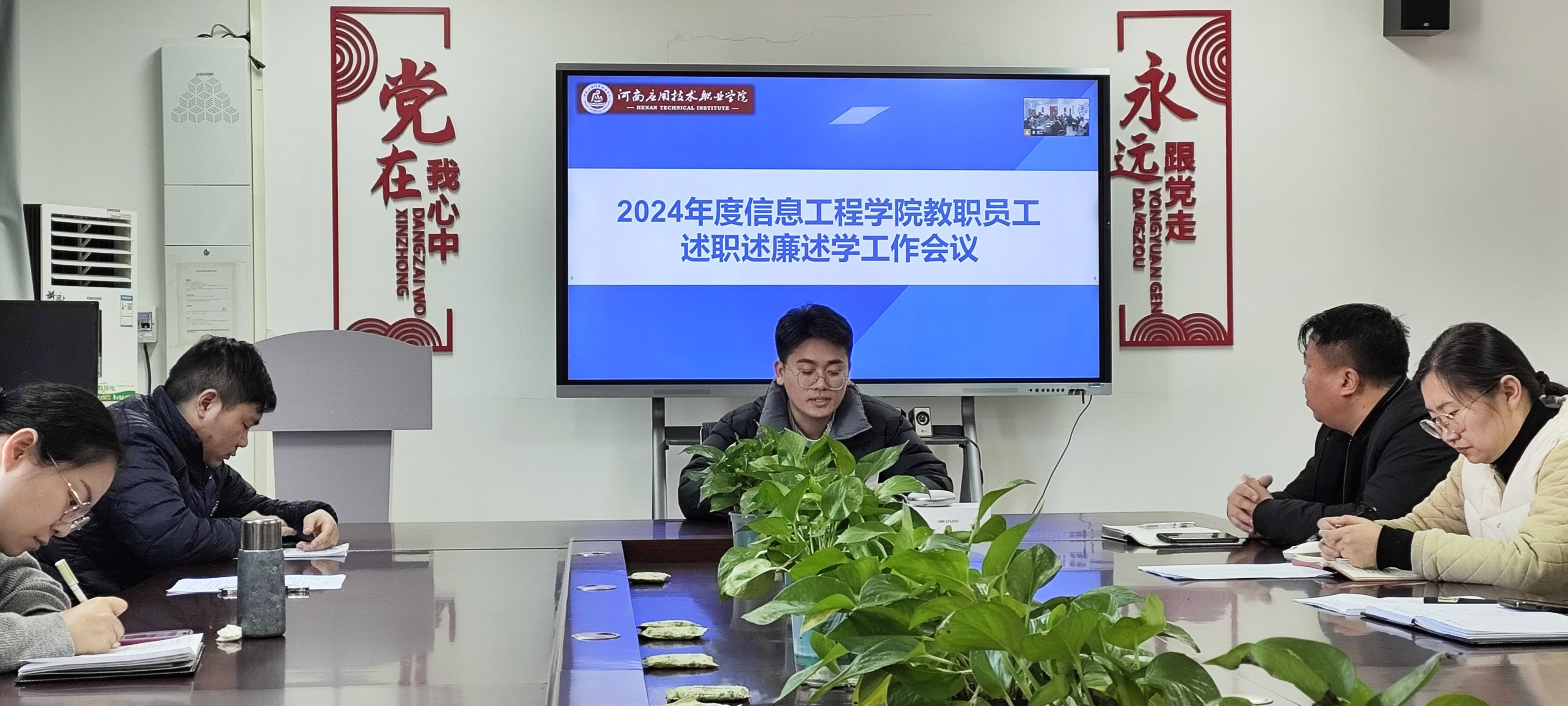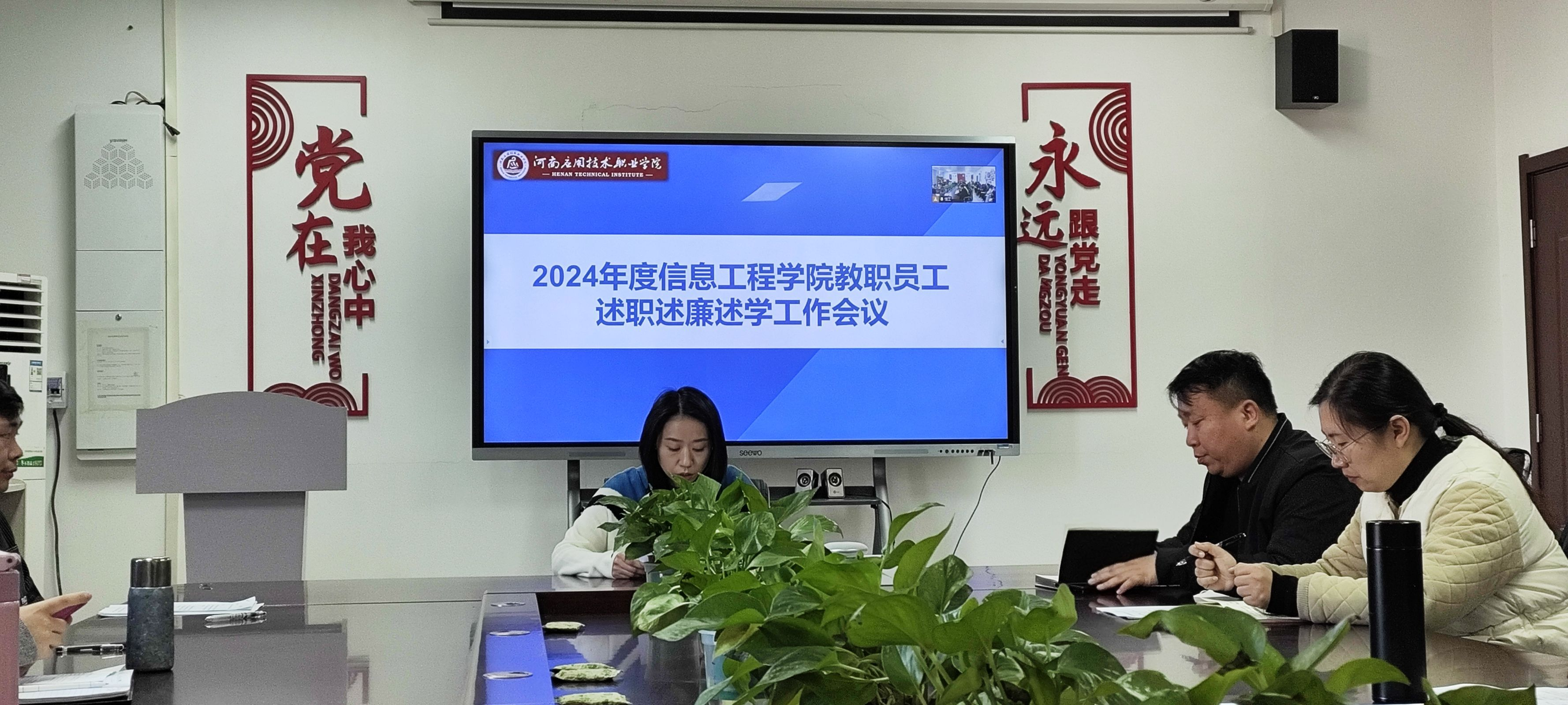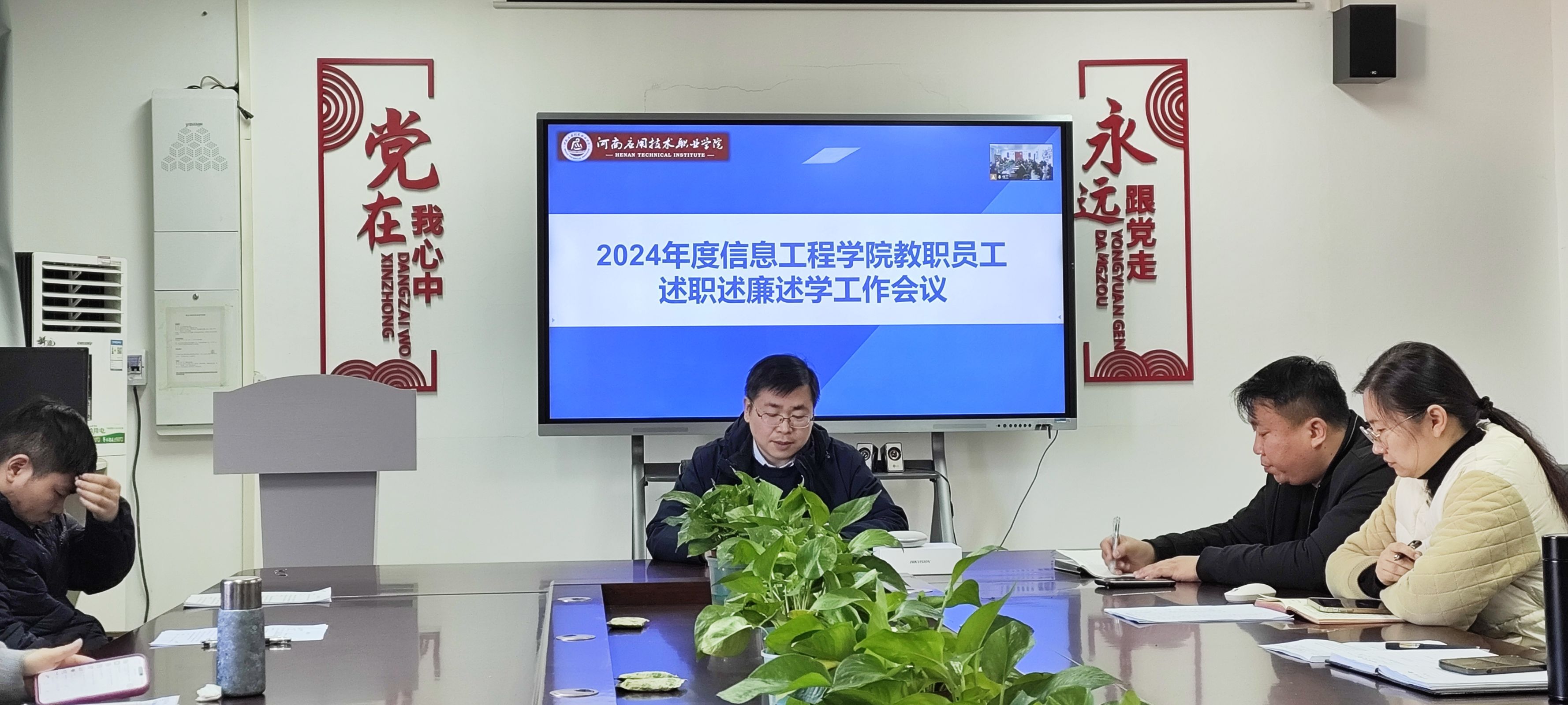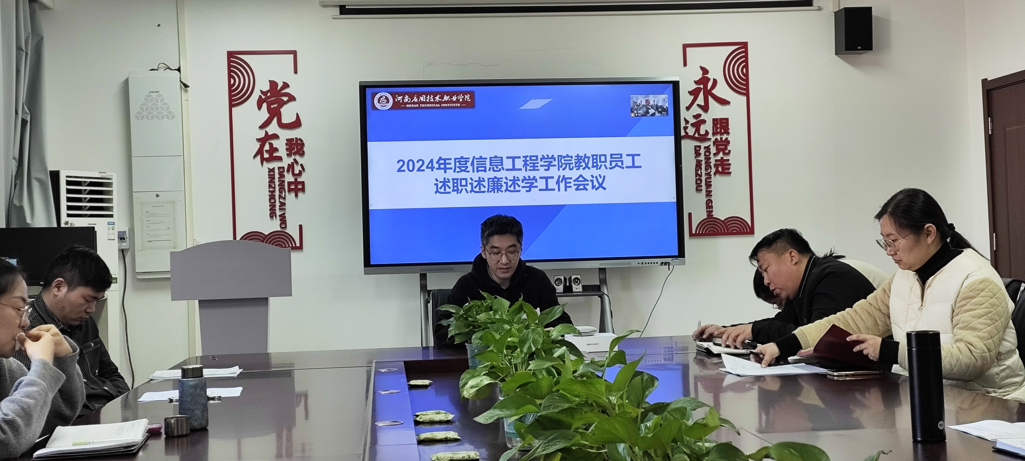 2025年1月15日,2024年度信息工程学院教职员工述职述廉述学工作会议在郑州校区A514、开封校区F314召开。会议由信息工程学院院长王雷主持并发表重要讲话。副院长夏丽珍、齐峰及全体教职工参加。