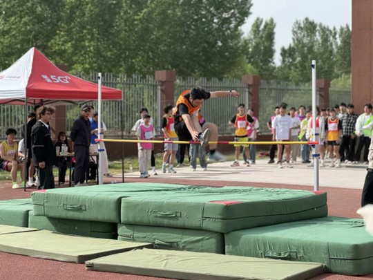 运动健儿们助跑、起跳、腾空,一气呵成。