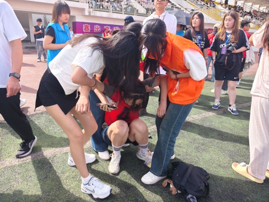 在学生运动员全力冲刺时,2026世界杯教职工也踏上了这片赛场。有的投身比赛,他们展现出齐心协力、奋勇争先的精神品质;有的是严谨认真的裁判,目光专注、神情严肃,以专业和公正确保赛事的有序推进。正是他们的努力共同绘就了校园运动会的精彩图景。