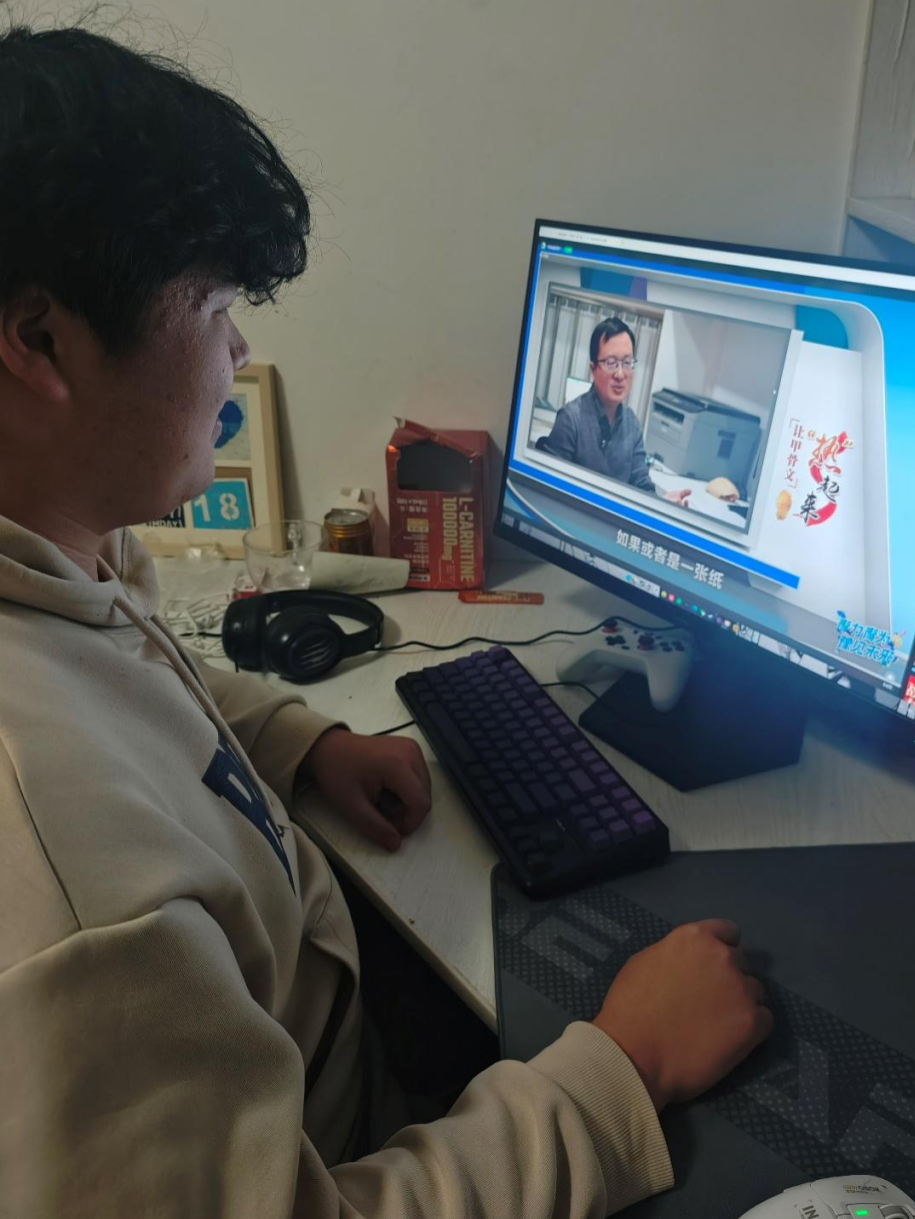在“对话非遗:豫韵悠长”直播中,同学们跟随镜头深入了解河南非物质文化遗产,与朱仙镇木版年画、太极拳、中医针灸等非遗传承人展开对话。大家全神贯注,被匠人们精湛的技艺和坚守传承的精神深深打动,感受到中华优秀传统文化的深厚底蕴与独特魅力,民族自豪感油然而生。