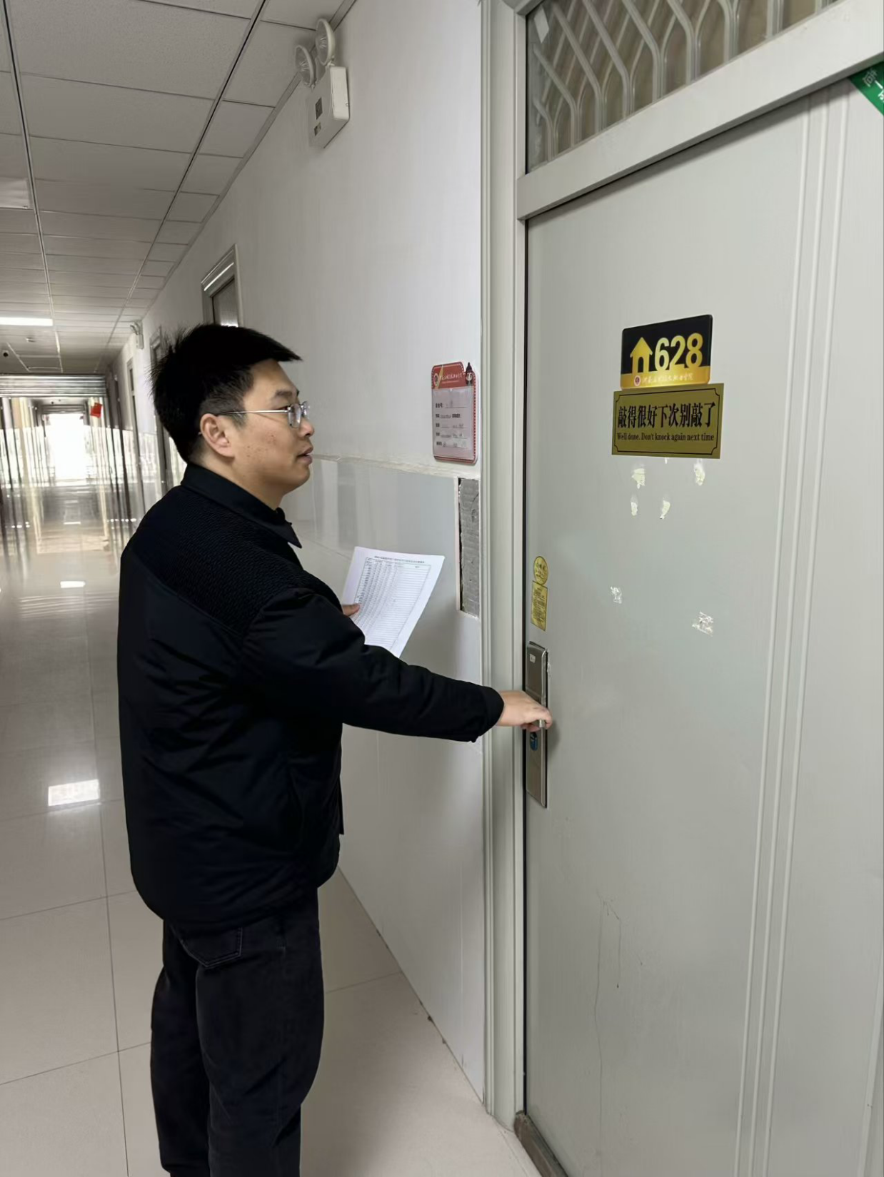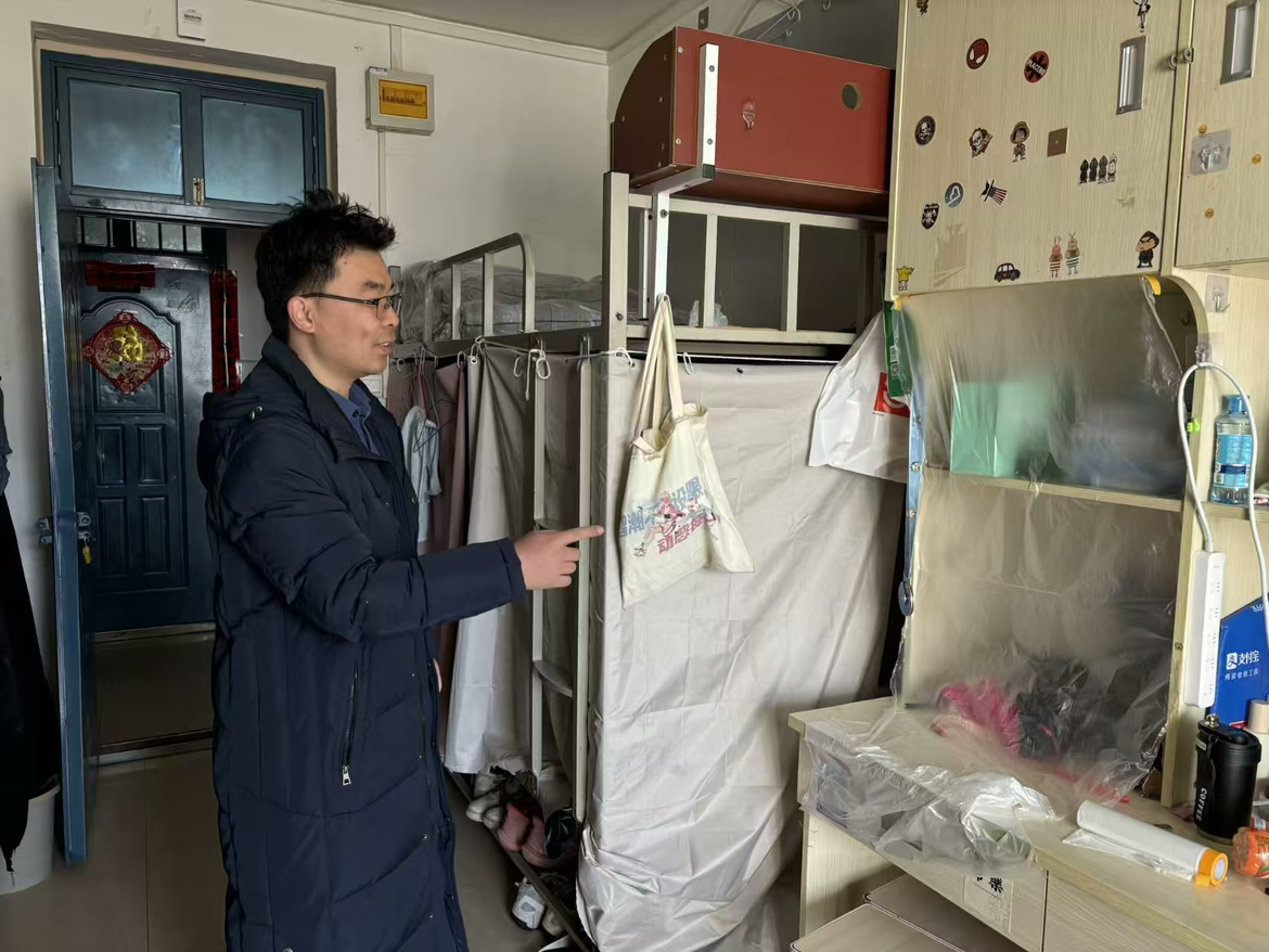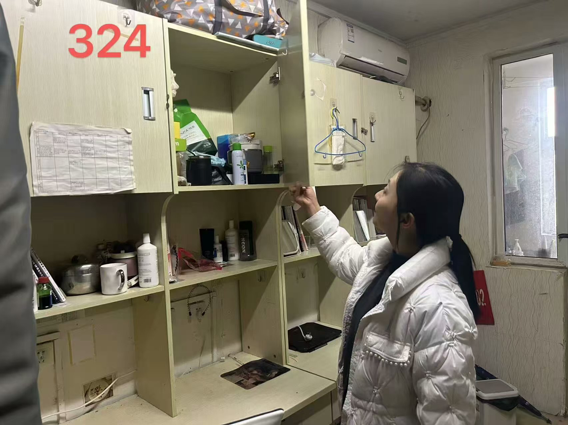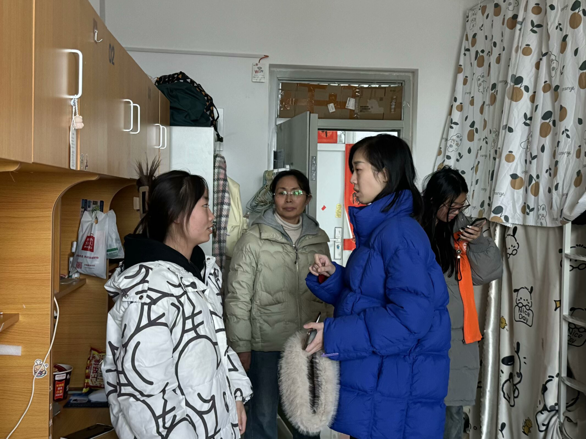 为切实做好假期宿舍安全工作,着力消除安全隐患,共筑平安校园,信息工程学院副院长齐峰、副书记蒋欣哲带领辅导员们深入学生宿舍关注学生诉求,提醒学生归家时注意乘车安全、财产安全;要求其在离校前做好宿舍内的断电、关窗、落锁等工作,并耐心复查验收离校学生宿舍。