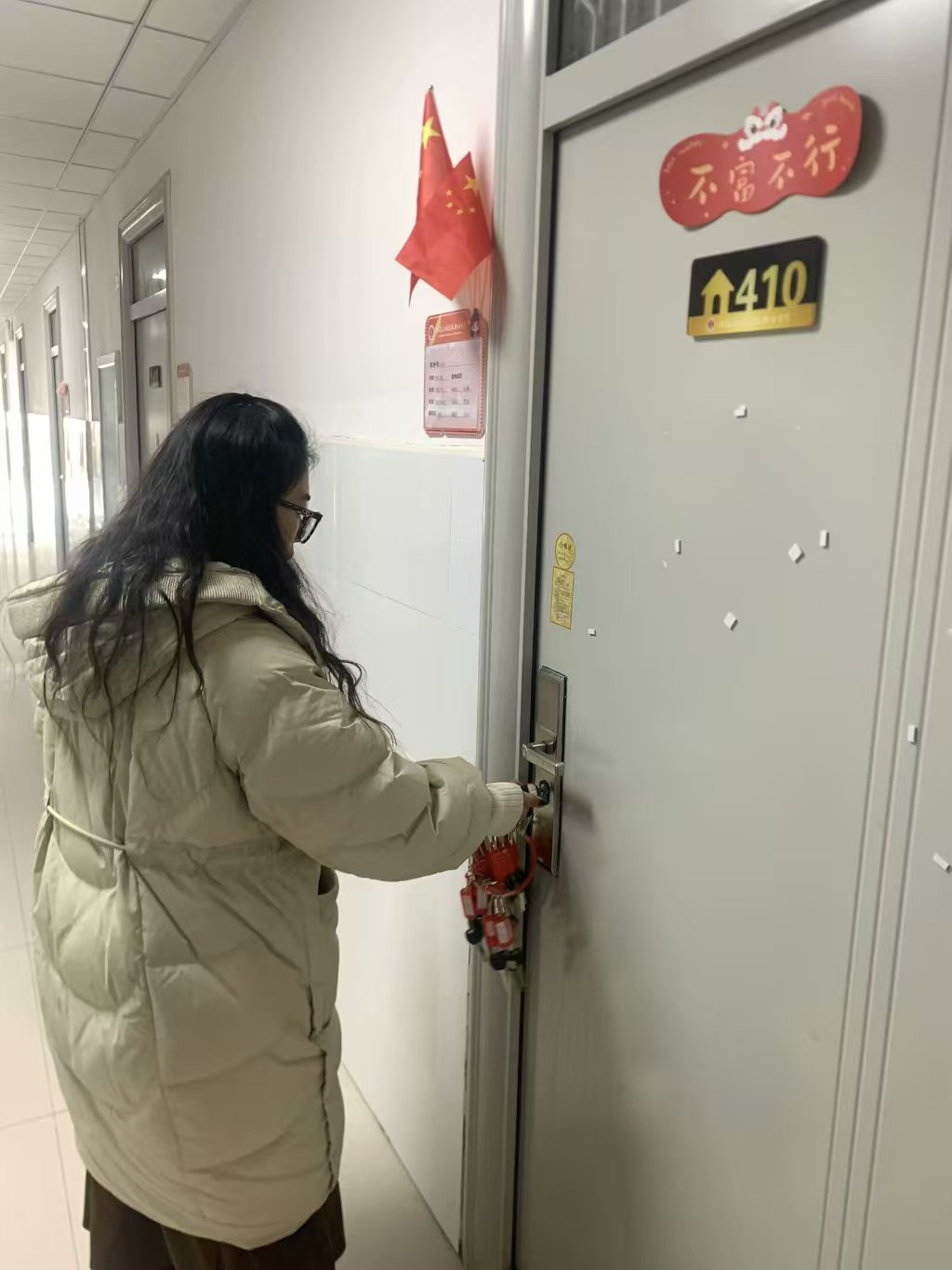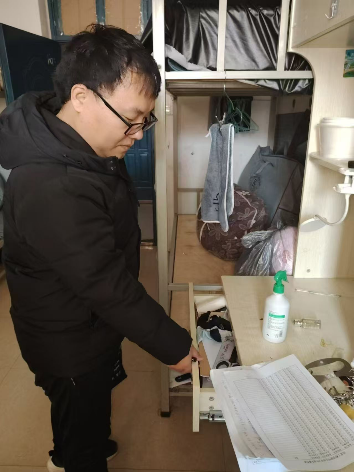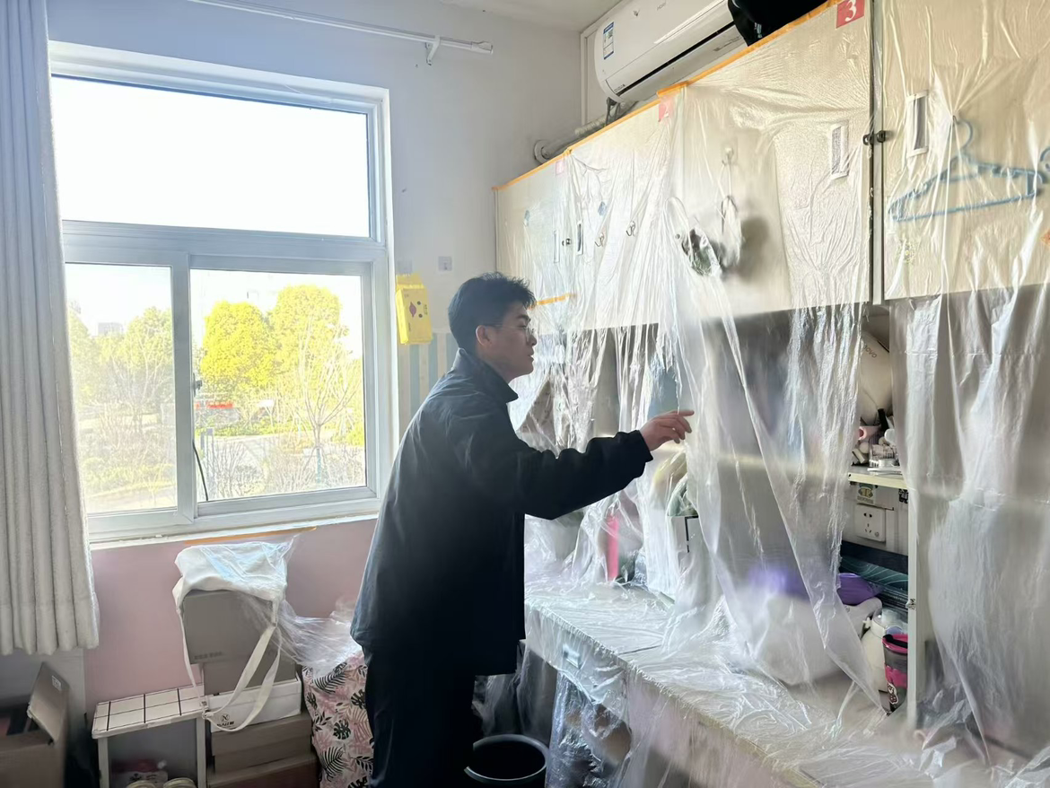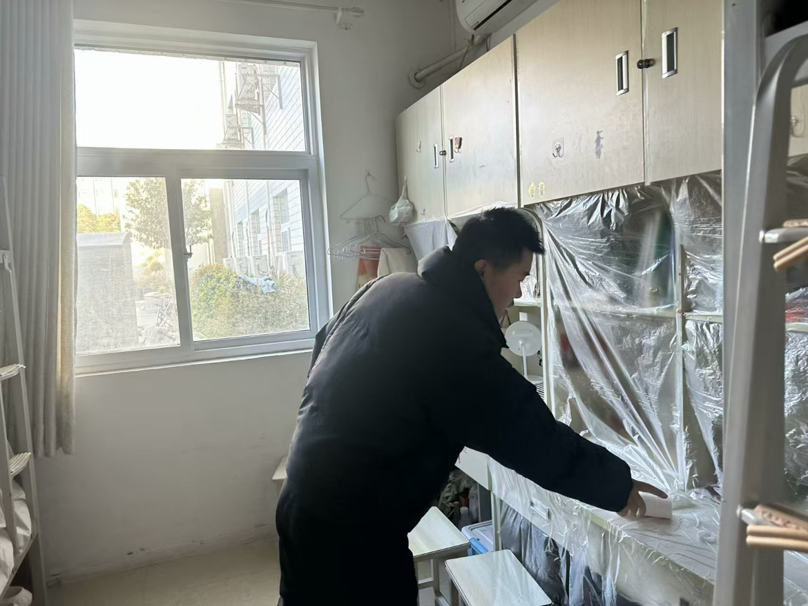 为切实做好假期宿舍安全工作,着力消除安全隐患,共筑平安校园,信息工程学院副院长齐峰、副书记蒋欣哲带领辅导员们深入学生宿舍关注学生诉求,提醒学生归家时注意乘车安全、财产安全;要求其在离校前做好宿舍内的断电、关窗、落锁等工作,并耐心复查验收离校学生宿舍。